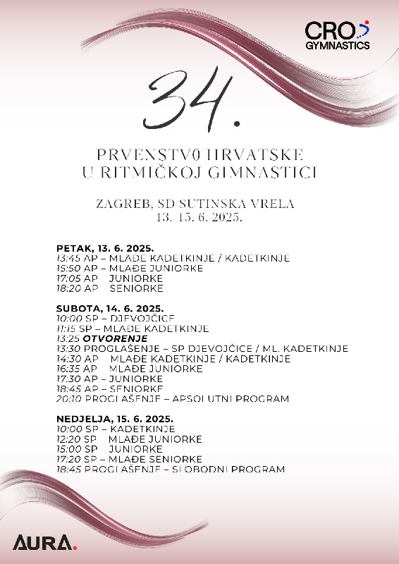 U organizaciji Hrvatskog gimnastičkog saveza i izvršnog organizatora Gimnastičkog kluba Aura, danas je u SK Sutinska vrela startalo trodnevno 34. Prvenstvo Hrvatske u ritmičkoj gimnastici.